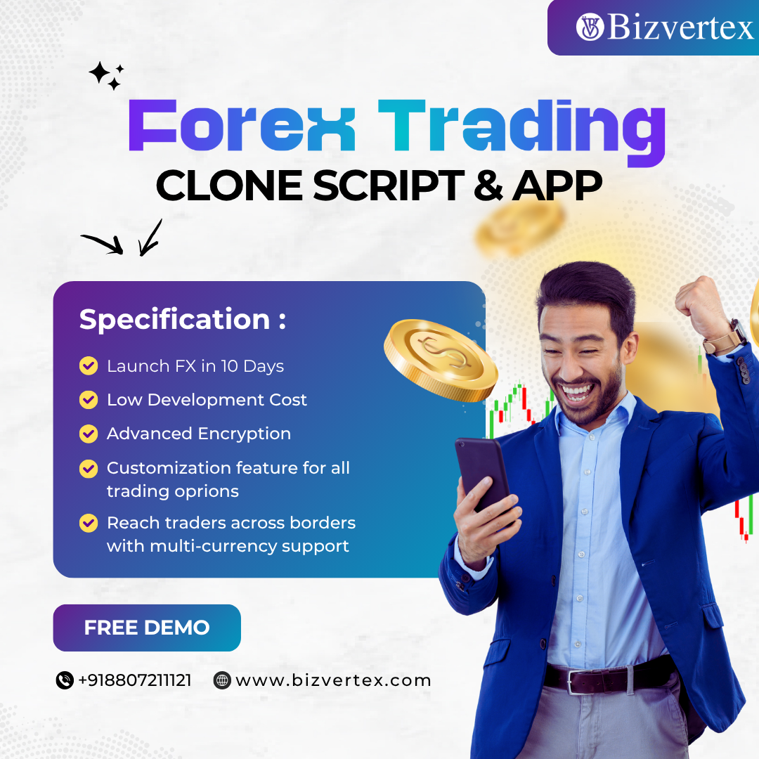 Create your own Forex trading platform using our sophisticated Forex Trading Clone Script! Our script provides a seamless and secure trading experience by including real-time market data, AI-powered trading bots, and strong security features such as SSL encryption and multi-sig wallets. It is ideal for brokers and fintech firms, offering multi-order execution, advanced charting tools, and a variety of payment systems to attract traders from all over the world. Begin trading with Bizvertex immediately and gain on the trillion-dollar Forex market!